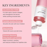 It contains Salmon DNA PDRN for brightening, firming, and skin barrier care; Centella Asiatica to soothe irritation; and Ocimum Sanctum (Holy Basil) Leaf Extract, which protects and calms the skin complexion.