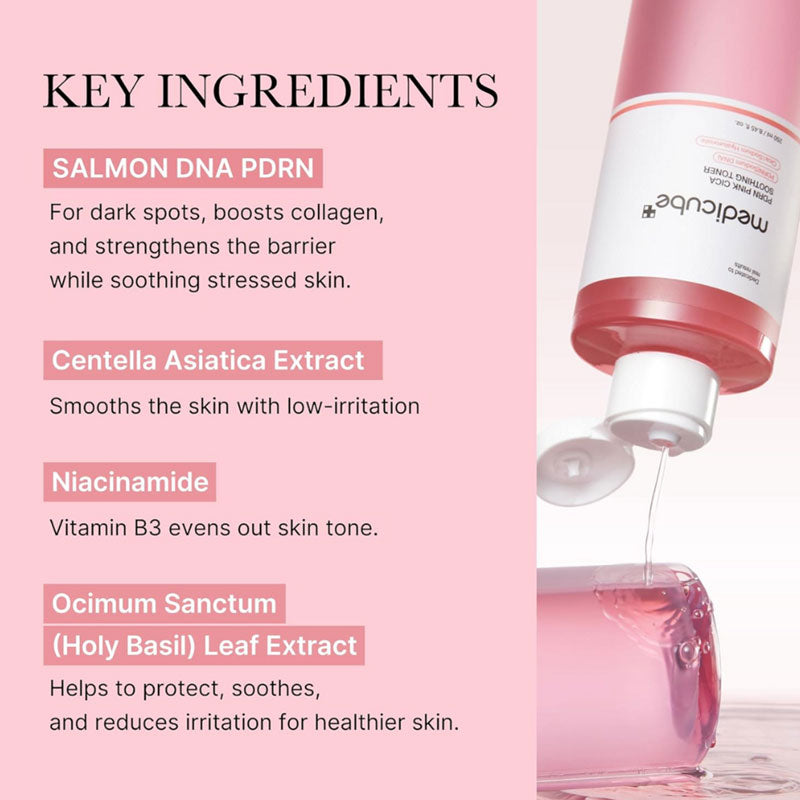 What are the key ingredients in the Medicube PDRN Pink Cica Soothing Toner?